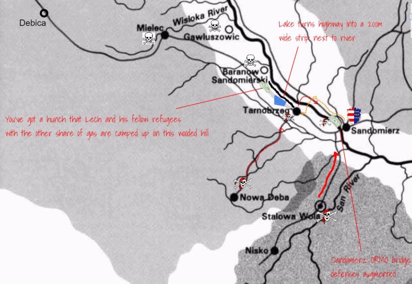 As they made preparations, they could hear explosions beyond the horizon. The battle for Sandomierz had begun. The group would head there after taking care of this little matter.