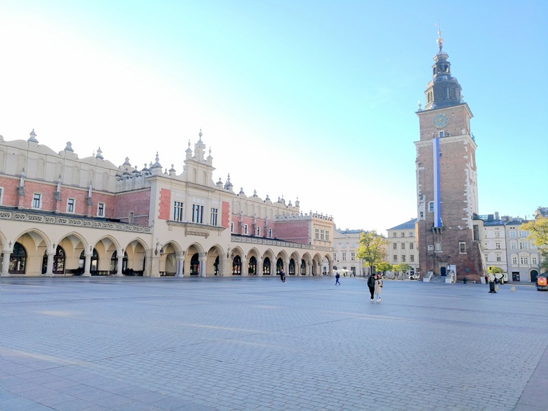 The Town Hall tower and the Cloth Hall on the Main Square. The Town